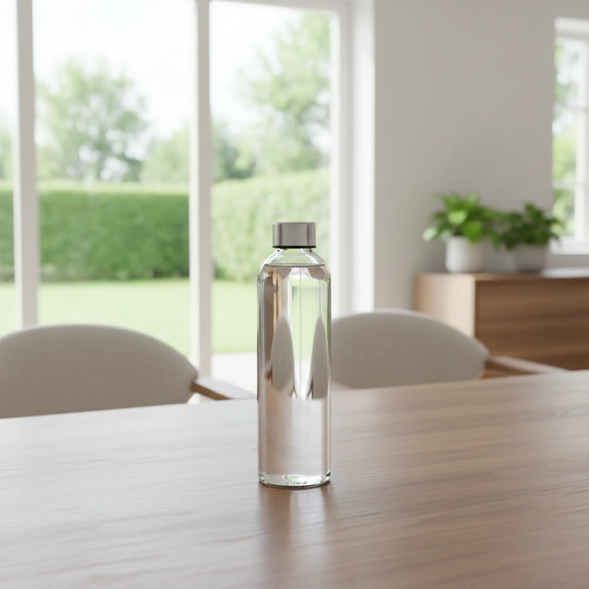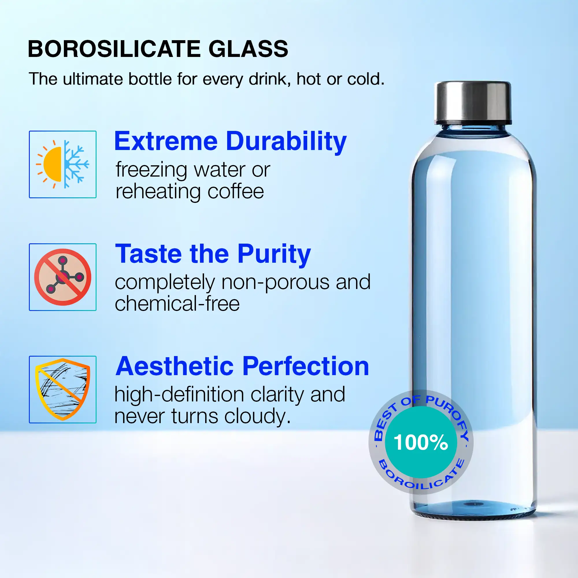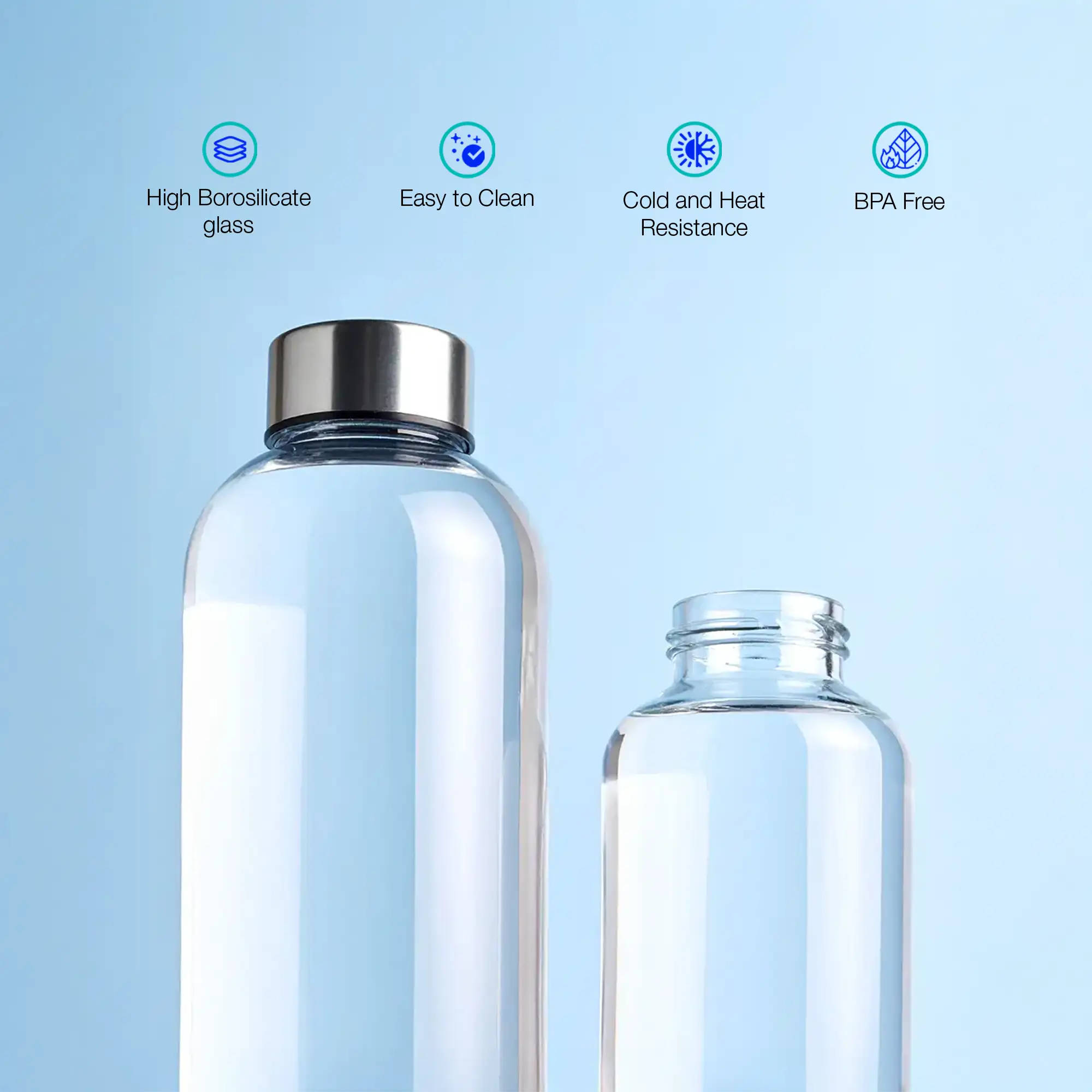 A 750ml reusable bottle made from premium, thermal-shock resistant borosilicate glass. Features a leak-proof stainless steel cap. The safe, eco-friendly 1-litre upgrade for pure, hot, or cold hydration.